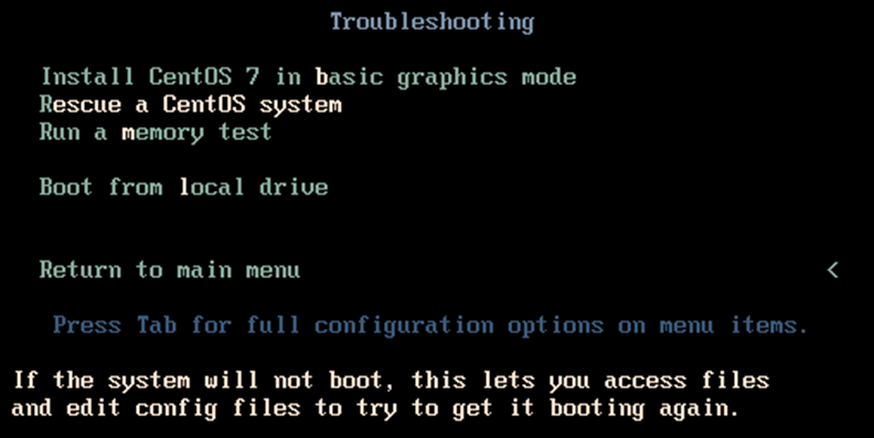 依次选择troubleshooting——rescue a centos system