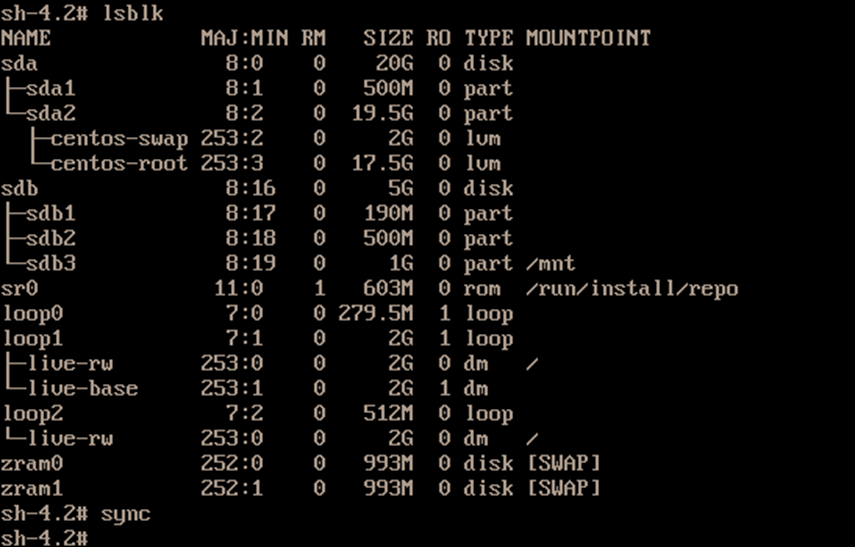 再次查看分区表,sda分区已识别,sync同步,重启正常进系统