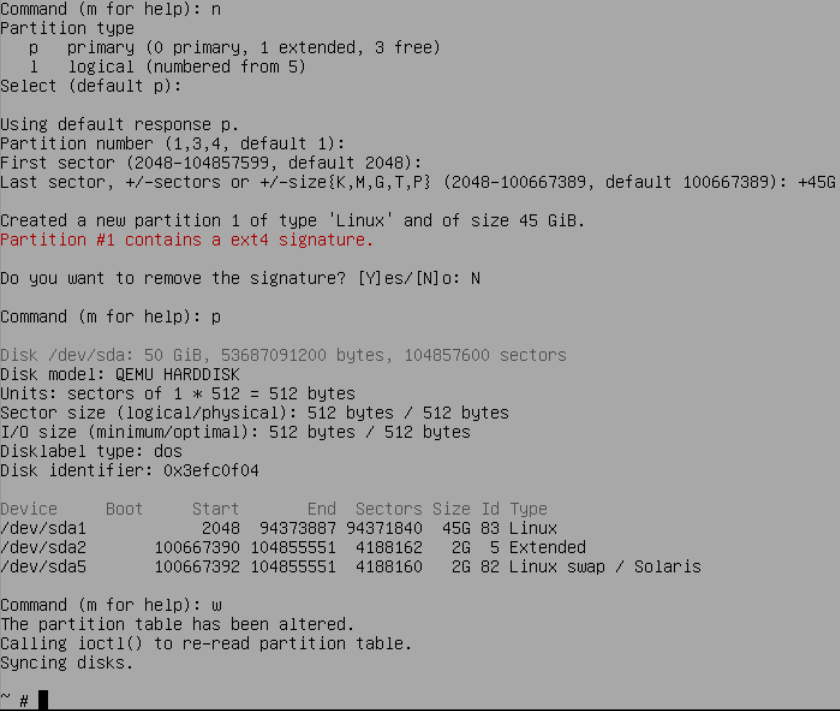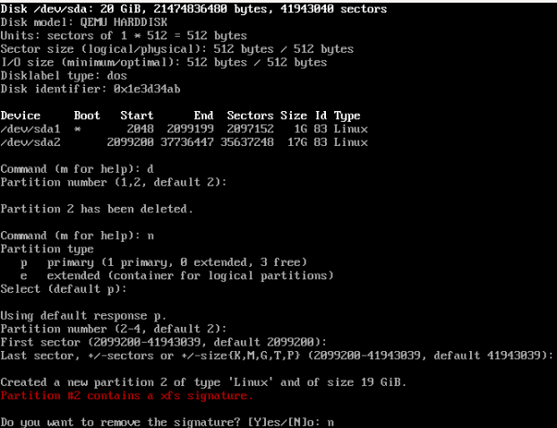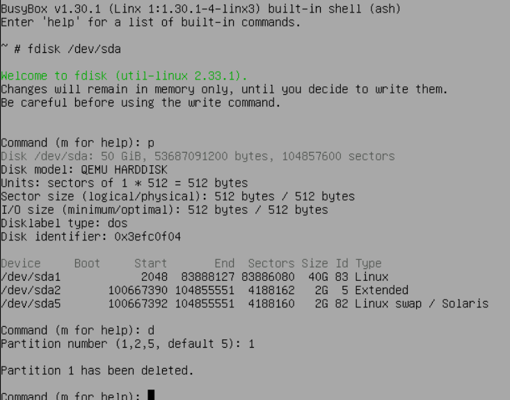 d 删除分区,选择删除sda1 ,此处序号为 1