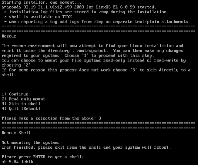 一、缩减根分区,此类分区在系统启动状态下无法直接卸载,需要进救援模式操作