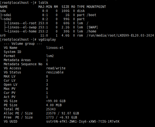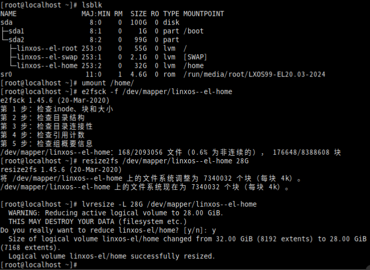 lvresize -L 28G /dev/mapper/linxos--el-home