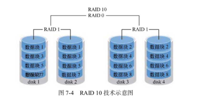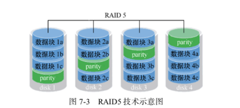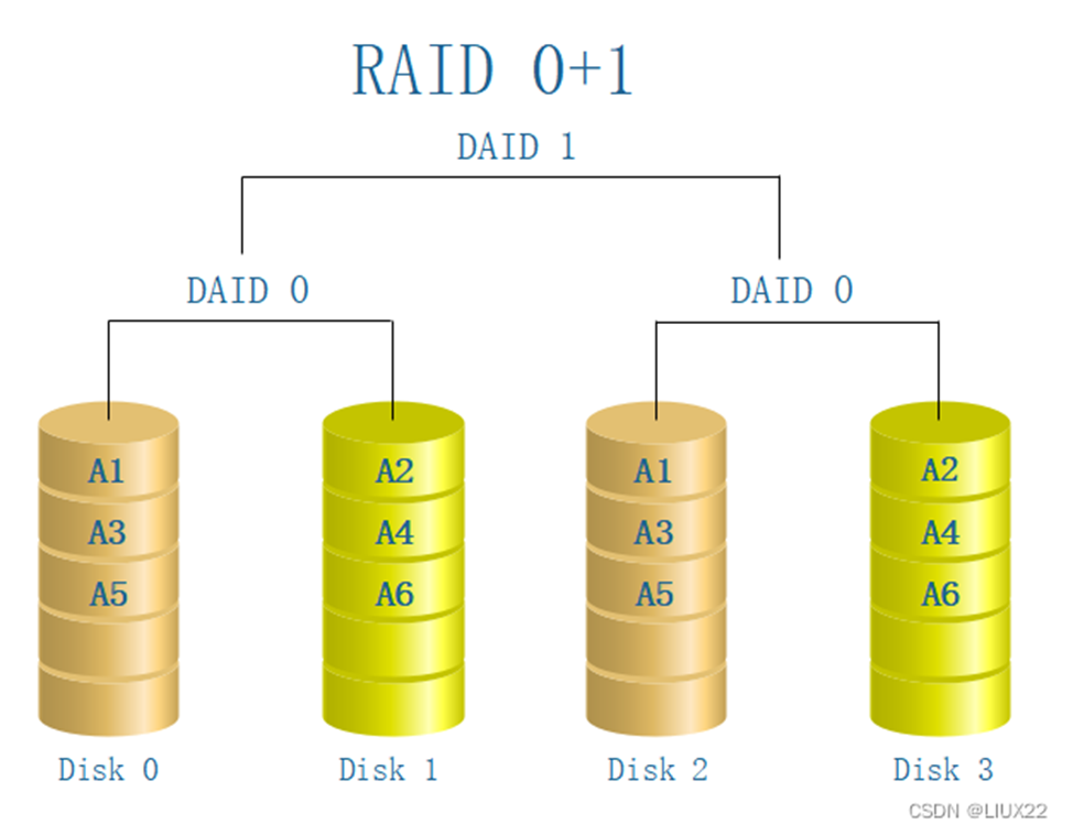 各raid对比图,总结起来就是实现冗余可靠、读写性能提升