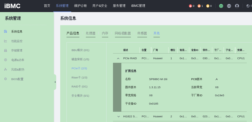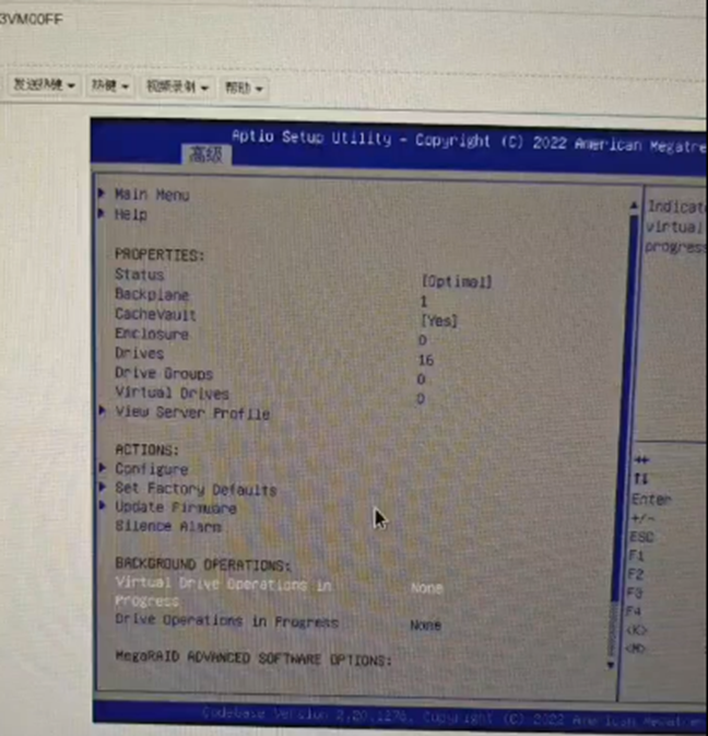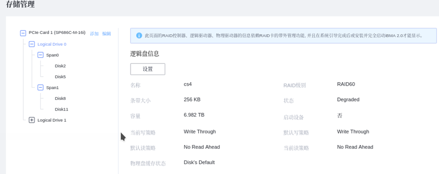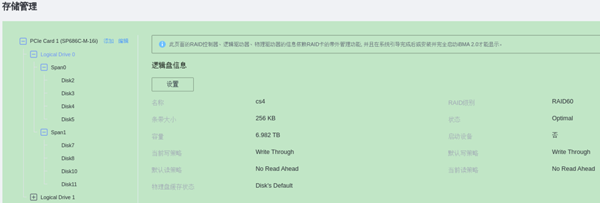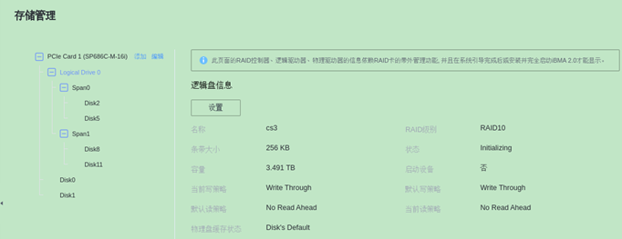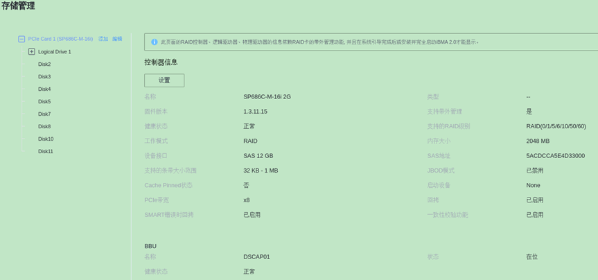 raid卡信息界面主要关注支持创建哪些raid,是否开启jbod