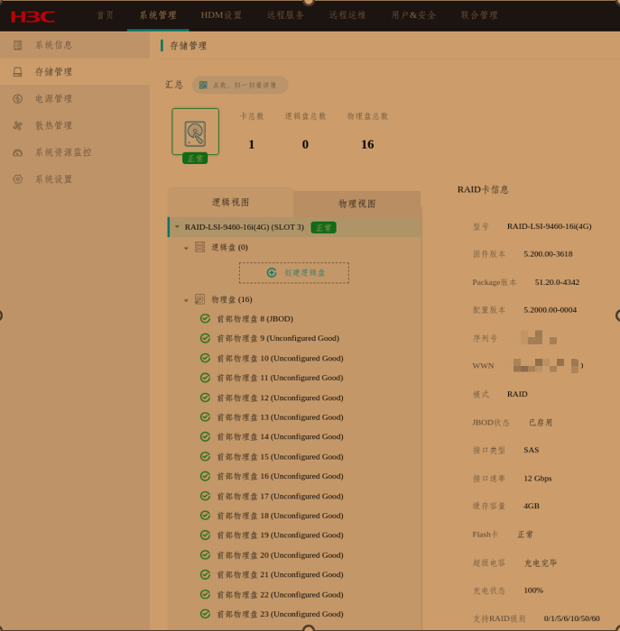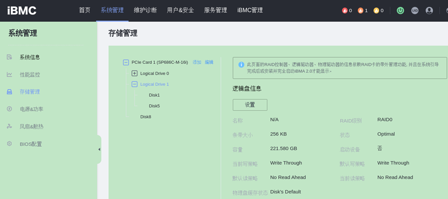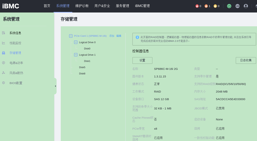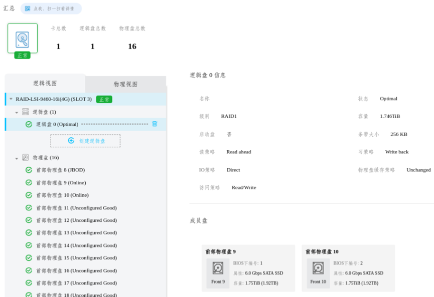通过bmc可做基础的逻辑卷配置,更多的配置需要到bios下raid界面配置,如开启jbod,清除物理盘中残留的raid信息