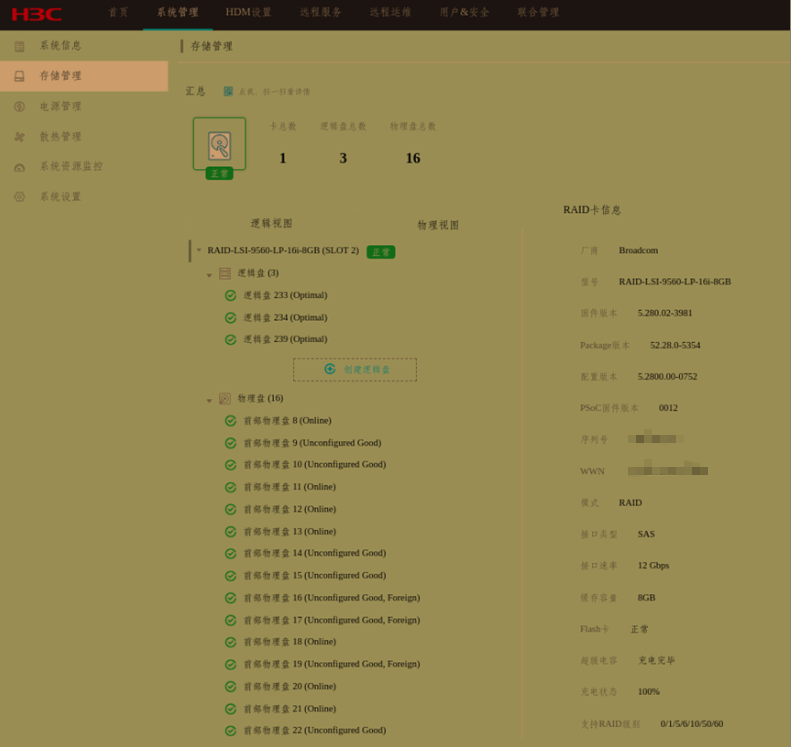 注:不是所有的raid卡可以带外管理,大部分还是得在bios界面配置