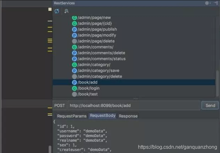 就能直接定位到我们想要的controller。这个也是真心方便,当然restfultookit还为我们提供的其他的功能。根据我们的controller帮我们生成默认的测试数据,还能直接调用测试,这个可以是解决了我们每次postman调试数据时,自己傻傻的组装数据的的操作,这个更加清晰,比在console找数据包要方便多了。