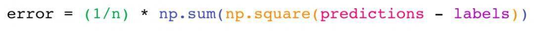 NumPy的关键用例是实现适用于矩阵和向量的数学公式。这也Python中常用NumPy的原因。例如,均方误差是监督机器学习模型处理回归问题的核心: