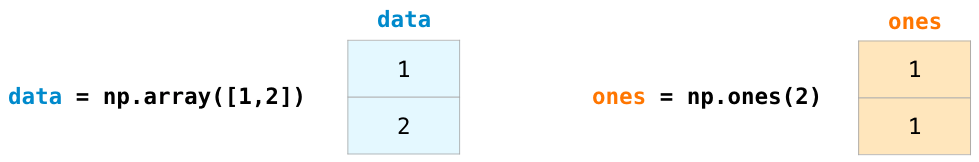 让我们创建两个NumPy数组,分别称作data和ones: