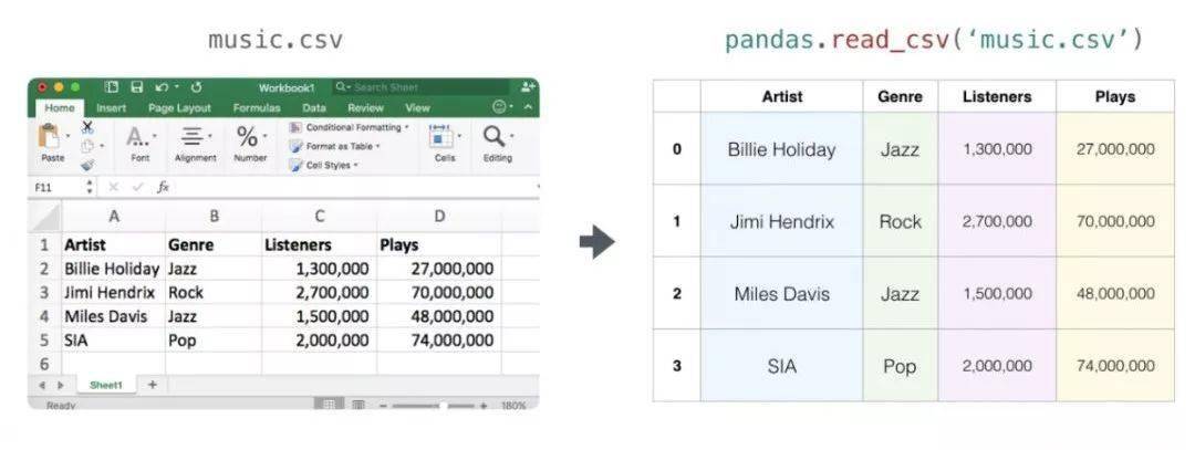 电子表格或数据表都是二维矩阵。电子表格中的每个工作表都可以是自己的变量。python中类似的结构是pandas数据帧(dataframe),它实际上使用NumPy来构建的。