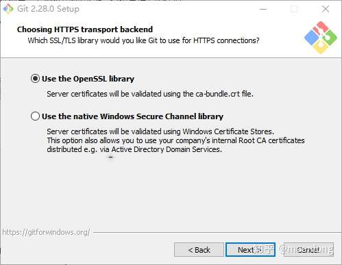 第一个选项是“使用 OpenSSL 库”。服务器证书将使用ca-bundle.crt文件进行验证。这也是我们常用的选项。