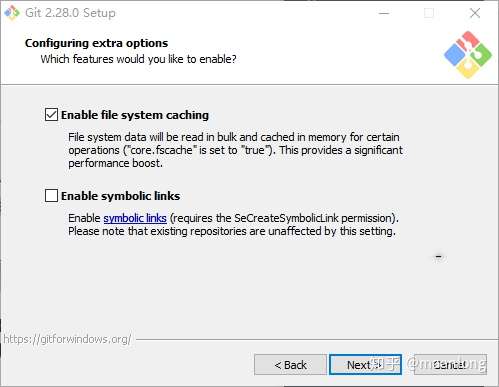 第二个选项是“启用Git凭证管理器”。Windows的Git凭证管理器为Windows提供安全的Git凭证存储,最显着的是对Visual Studio Team Services和GitHub的多因素身份验证支持。 (需要.NET Framework v4.5.1或更高版本)。