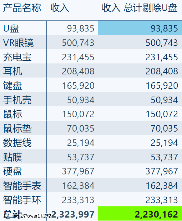 比如这个矩阵,如果将经特殊调整的U盘和总计数据背景换个颜色: