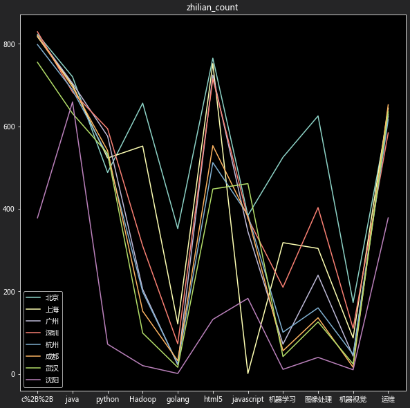 我在沈阳,东北的软件环境不太好,想换个城市,但是获取不到对不同城市的软件环境的定量分析,所以写个爬虫爬取各招聘网站上不同城市、不同行业的招聘信息,做一个定量的比较,为制定下一步计划提供一些数据支持。主要分析不同城市不同行业的岗位数量情况和薪资情况。由于各种原因的存在,很难验证所得出的结论与实际的贴合度,仅供参考。