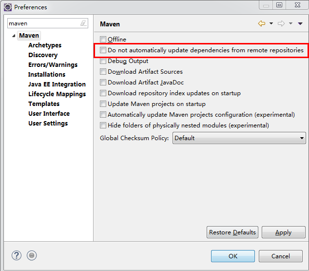 这个千万不要勾选,不会自动给你下载远程仓库的依赖,我就是勾选了这个。