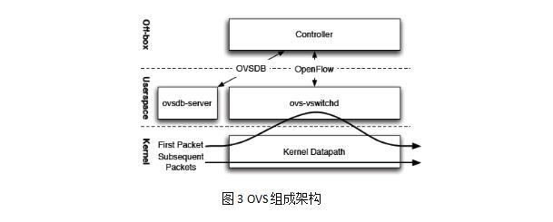 OVS的组成结构: OVS的构成非常简单,每个部件负责各自的职责,图3描述了其基础架构组成。