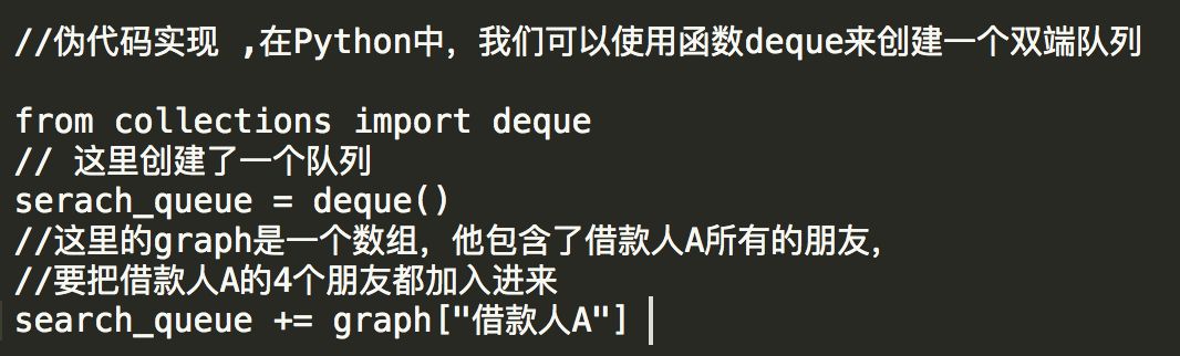 广度优先搜索,不仅查找从借款人A到朋友13的路径,而且找到的是最短路径,为什么要找到最短路径呢,原因是图关系中,越近找到,说明关系越紧密。