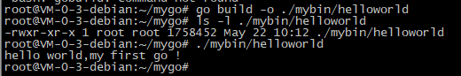 -rwxr-xr-x 1 root root 1.7M May 21 21:42 mygo ---可执行文件