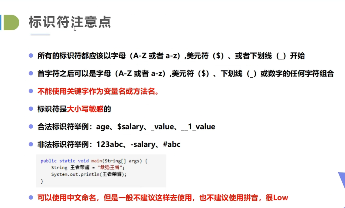 3.Java所有组成部分都需要名字。类名、变量名以及方法名都称为标识符。