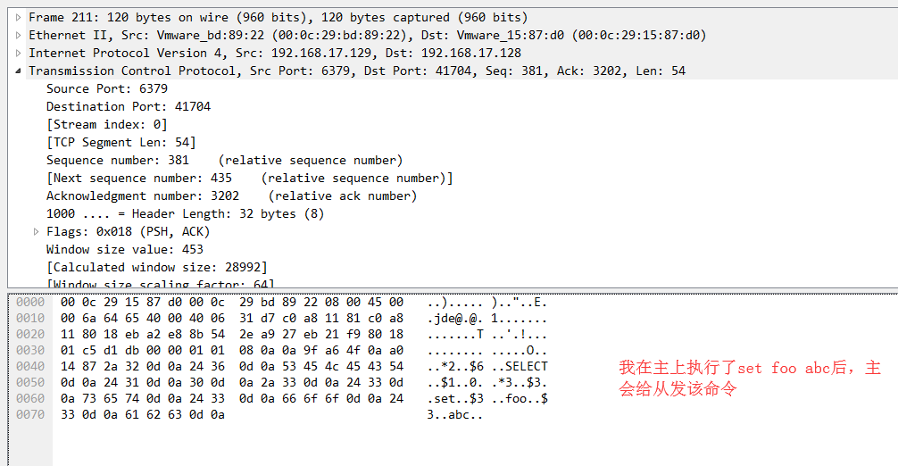 实际抓包中,还发现,每隔一定时间,主服务器会给从发送ping: