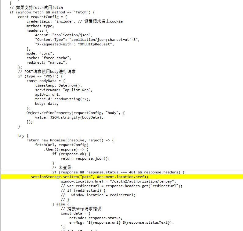 然后,后续oauth那边会把我们重定向回来,我们需要在对应的入口文件里,取出存储到sessionStorage中的url,用这个url来访问。