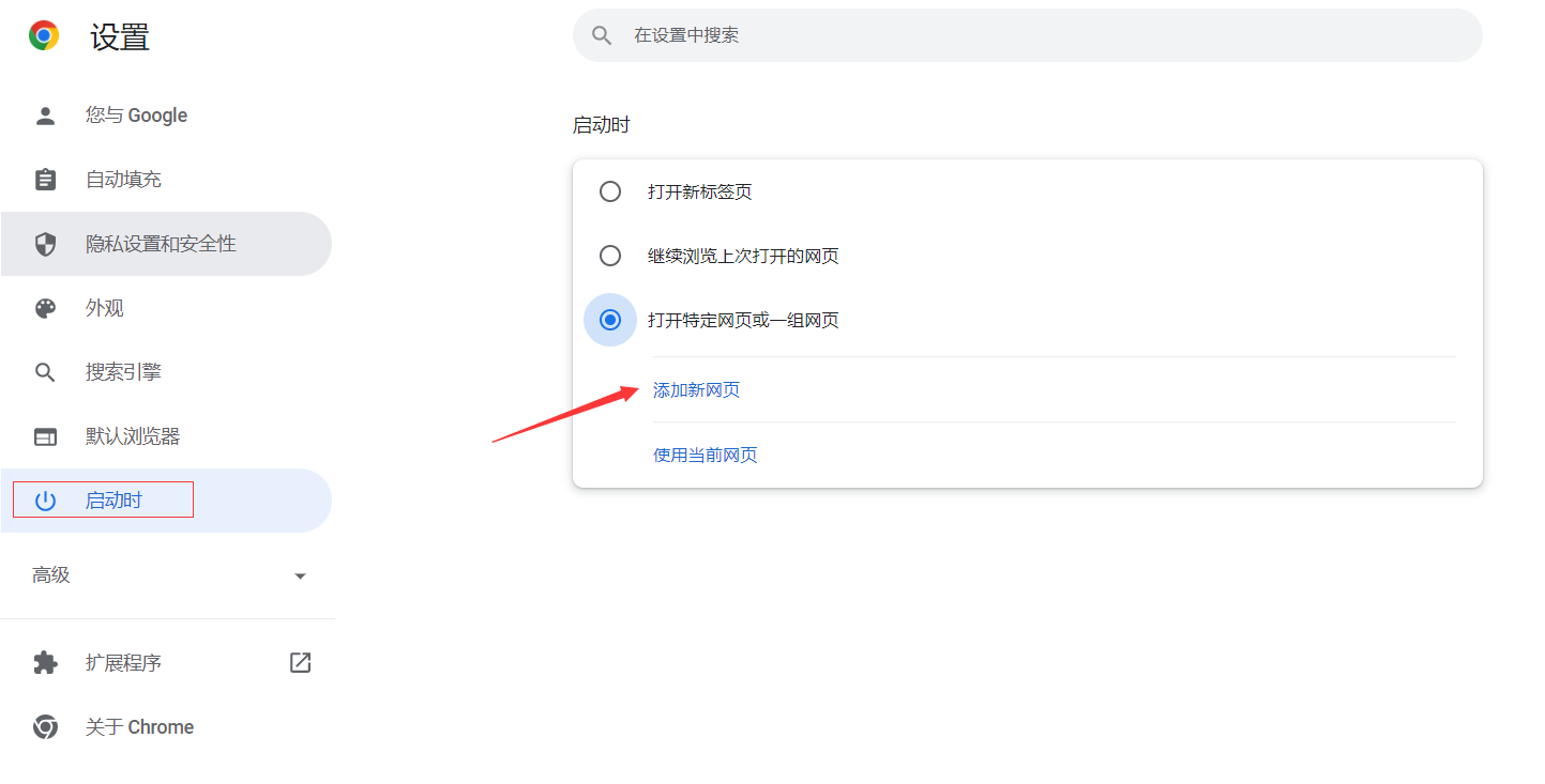 谷歌浏览器设置启动时默认打开百度首页