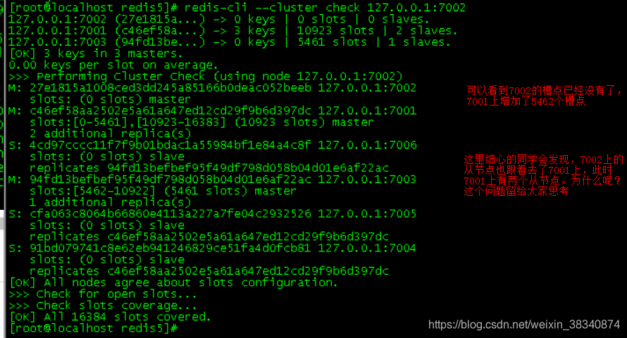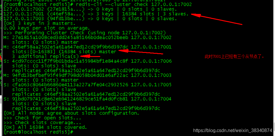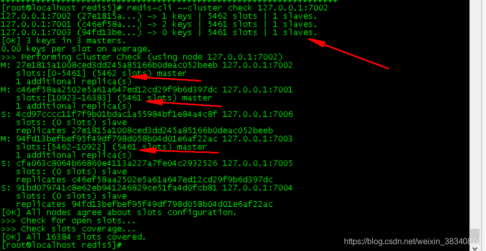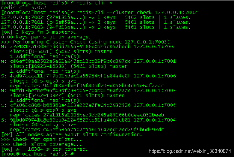 redis-cli --cluster check host:port此命令可以查看集群的各个节点的信息。
