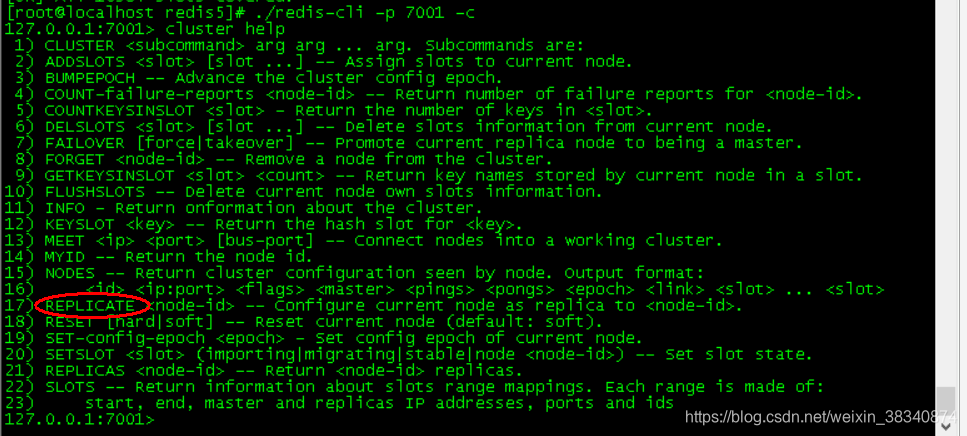 我们圈住的这个可以指定当前从节点到哪一个主节点下,可以自由分配,随意玩转redis5.0的槽点。还有forget,是为了删除某个节点后,其他节点有保留信息,仍旧会进行心跳通信,所以需要每一个保留的节点下,都要进行forget。还有一些其他的好玩的命令,这里就不一一介绍了。谢谢你的到来。