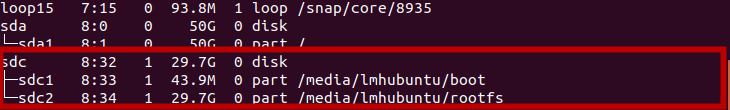 然后将sdc1和sdc2分别挂载在fat32和ext4