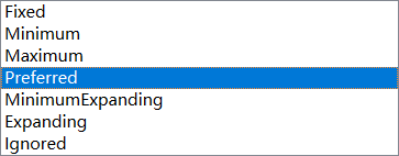 在可视化设计师界面,最右侧属性可以看到sizePolicy属性,这个属性也是属于QWidget,他可以分别设置水平方向和垂直方向: