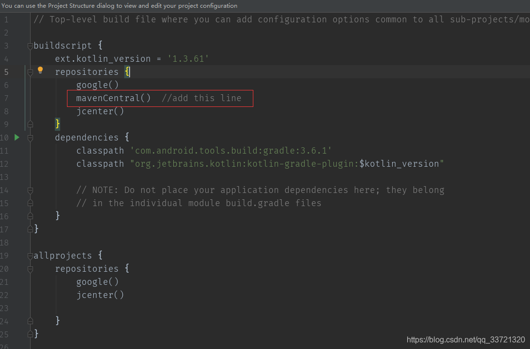 错误如下: Download Failed :https://jcenter.bintray.com/org/jetbrains/kotlin/kotlin-compiler-embeddable/1.3.61/kotlin-compiler-embeddable-1.3.61.jar