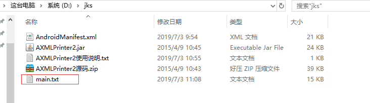 注意看图我的AXMLPrinter2.jar绝对路径在D:\jks
