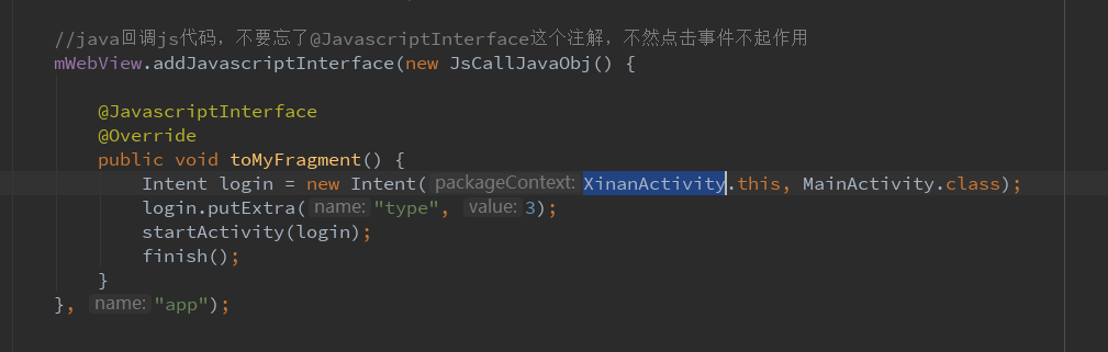 mWebView.addJavascriptInterface(new JsCallJavaObj() {