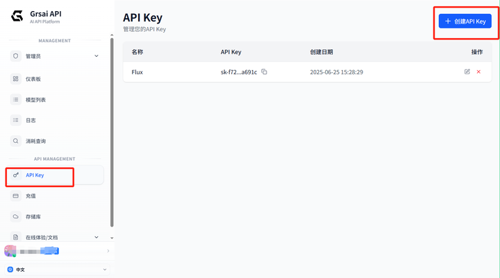 获取API密钥:在仪表盘“Ai key”中生成密钥。