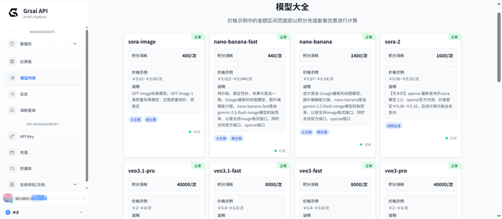部分热门模型(完整列表见GrsAi控制台:https://grsai.com/zh/dashboard/models)