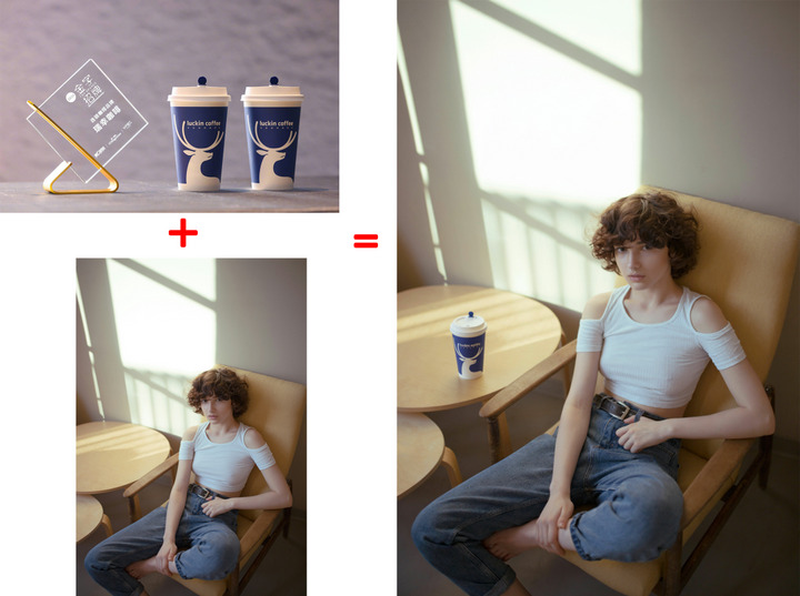 提示词:图二桌子上放上一杯,图一的咖啡杯
