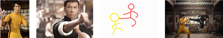 提示词:让这两个人以图3中的姿势激烈战斗,加入丰富的视觉背景和环境细节,强调场景中的互动与紧张氛围