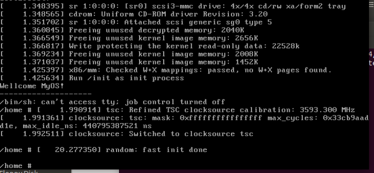 #!/bin/sh mount -t proc none /proc mount -t sysfs none /sys echo "Wellcome MyOS!" echo "--------------------" cd home /bin/sh