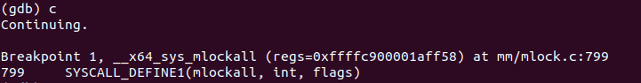 首先断点定位为到/home/linux-5.4.34/mm/mlock: 799: