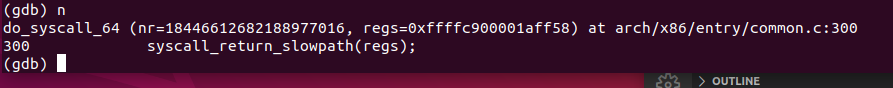 在虚拟机中执行 gsn,在gdb界面查看断点分析: