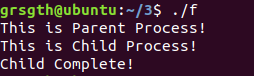 #include <stdio.h> #include <stdlib.h> #include <unistd.h> int main(int argc, char * argv[]) { int pid; /* fork another process */ pid = fork(); if (pid < 0) { /* error occurred */ fprintf(stderr,"Fork Failed!"); exit(-1); } else if (pid == 0) { /* child process */ printf("This is Child Process!\n"); } else { /* parent process */ printf("This is Parent Process!\n"); /* parent will wait for the child to complete*/ wait(NULL); printf("Child Complete!\n"); } }