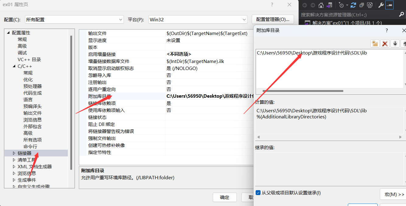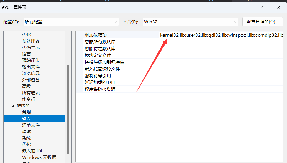 方法二 附加依赖项。这样直接指定文件名、那么应该把前面的lib层级配置到 win/x86这么深