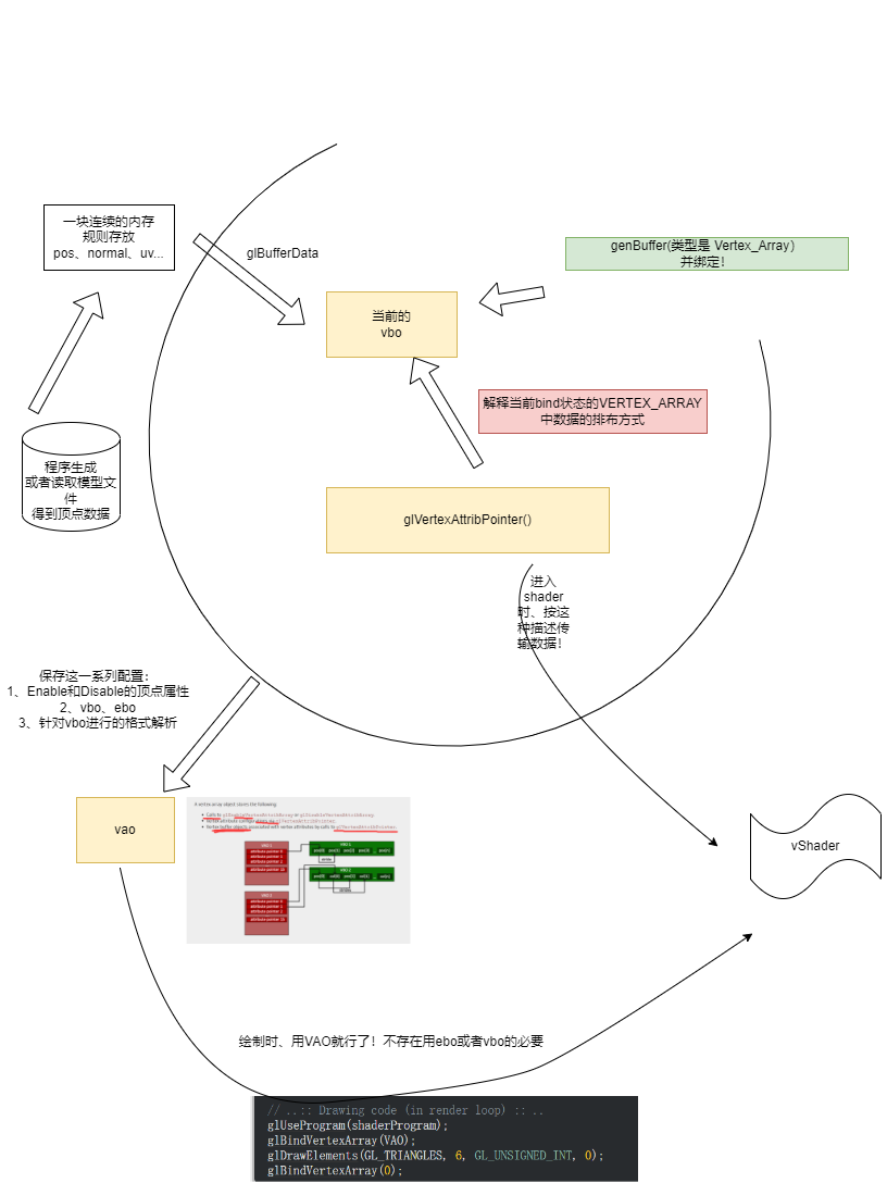 这一堆的配置、如果是在 bind了一个vao的情况下完成的、这个vao就默默记录了这些配置(当然还有ebo、也是类似的)