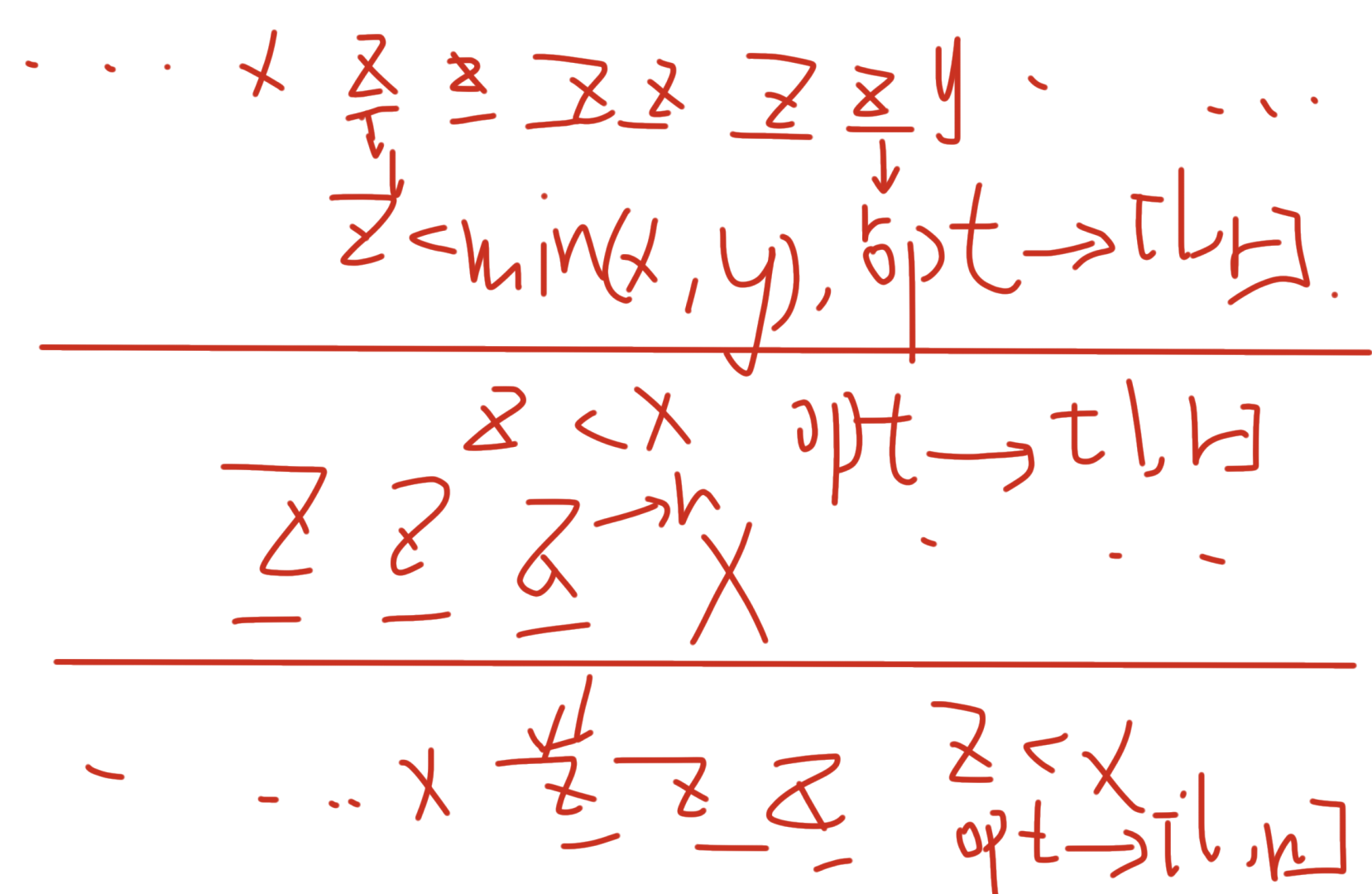第一种操作可以使用 \(r-l+1\) 的代价让答案减 \(2\),第二种操作可以用 \(r\) 的代价让答案减 \(1\),第三种可以用 \(n-l+1\) 的代价让答案减 \(1\)。考虑建立笛卡尔树,此时一个点的子树就对应的是一个可以操作的区间(你得看一下是上面操作的哪一种)(为什么一定是一个可以操作的区间呢,因为此时对于一个最开始讲的可以操作的那种形式的区间,它对应在这里面肯定是一棵子树,然而对于任意一棵子树,它的子树内的小的子树肯定是能操作就操作完了的,所以它们肯定都是变成了子树根的值的,所以如果你要操作这一棵子树,那么它一定是满足那个形式的)。我们令一个可以操作的子树的根的值为 \(z\),它对应的左右两边的第一个比它大的是 \(x,y\),那么对于这个子树就最多可以操作 \(x-z\) 次。