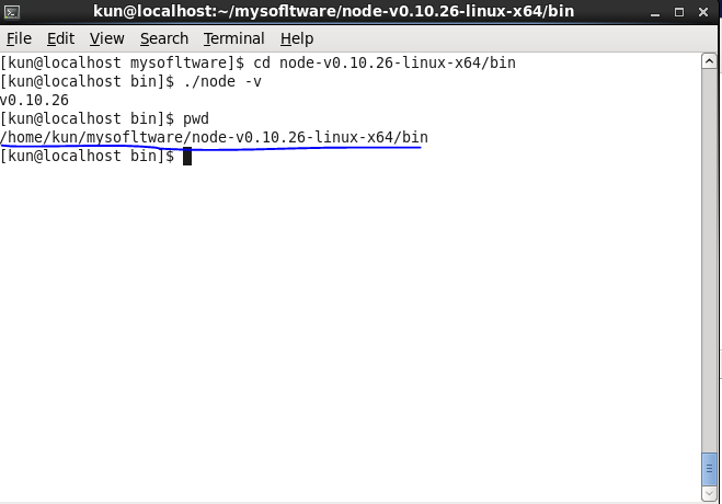 PATH=$PATH:/home/kun/mysofltware/node-v0.10.26-linux-x64/bin