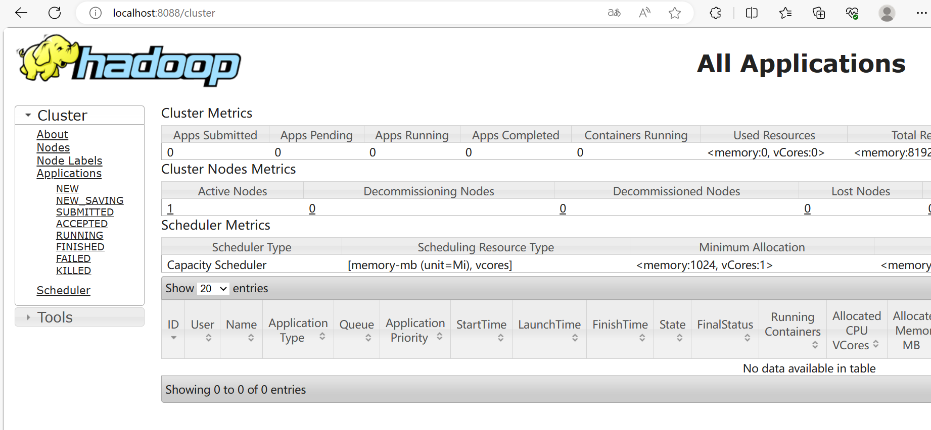 进入hadoop/sbin文件夹,双击start-all.cmd,出现四个弹窗