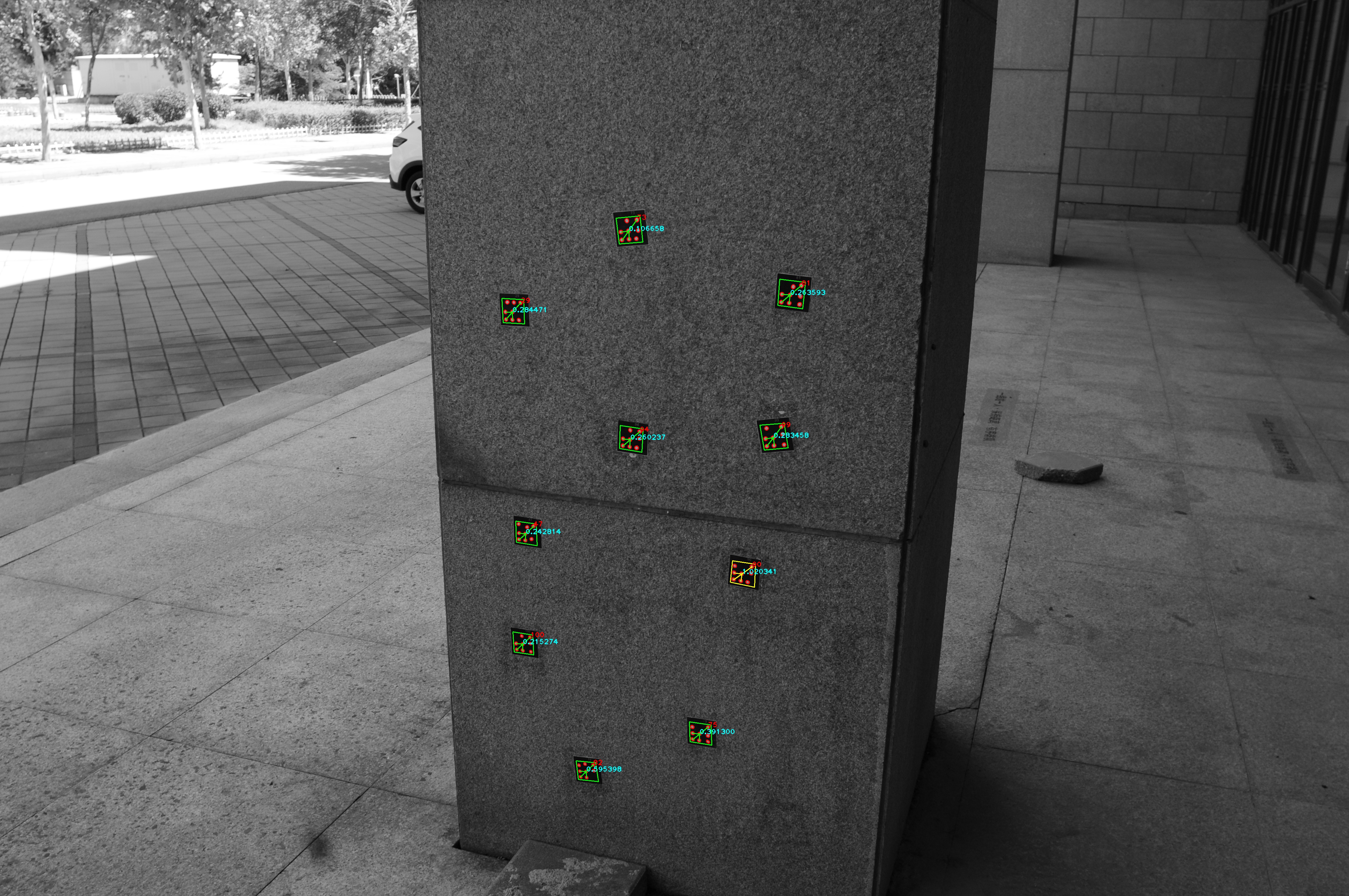 - 问题:8个点再确定id时,先找直线三点,再找两侧的点。但是实际上在找的过程中,因为视角原因,存在与AEC不对应三点也能构成非常直的直线,且两侧点到中心点E(此时是错误的E点)的距离也满足比例。这种情况下,给校验的阈值设定带来了困难,因为这个过程中存在非常多的阈值设置,而这些阈值之间谁的影响最大很难说,有时候就在阈值附近徘徊就很难处理。
