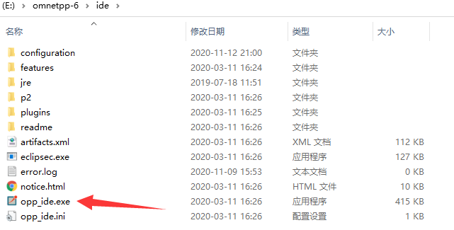 3)验证安装的成功性,进入omnetpp-6/ide文件夹 。opp_ide.exe这个文件就是ide的启动文件。双击启动