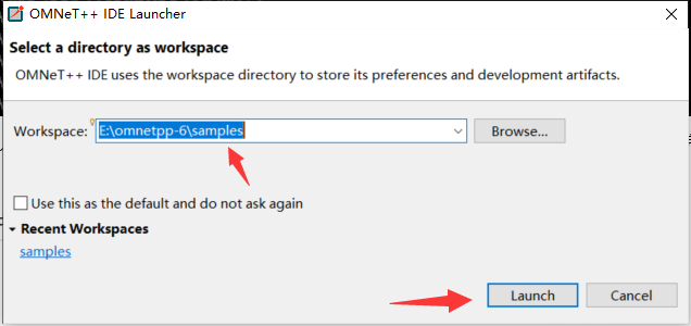 4)选择默认的工作空间samples,因为其下面有ide自带的一些项目例子。然后一步步默认选择下一步就行