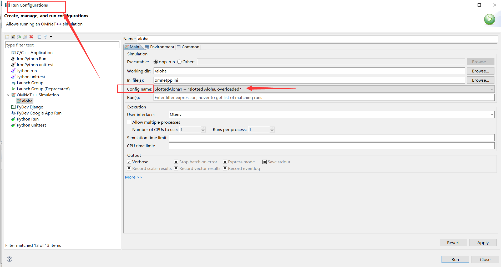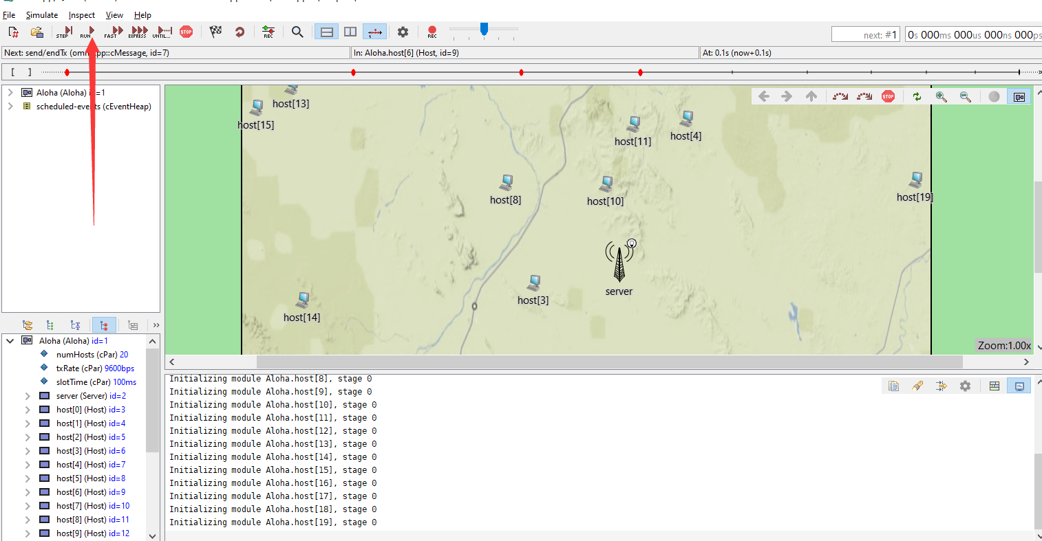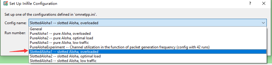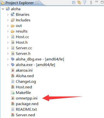 5)会看到左边的一些例子,双击后打开,我这里选择aloha,打开后会看到omnetpp.ini文件,右键>Run As >1 Omnet++