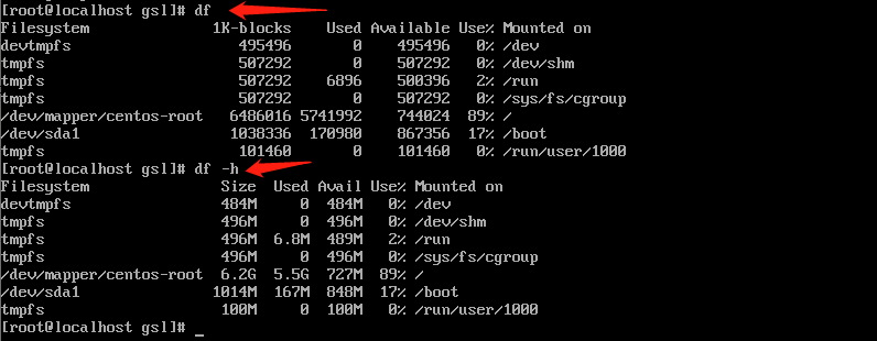 df : 显示当前磁盘的情况,显示的是字节的形式